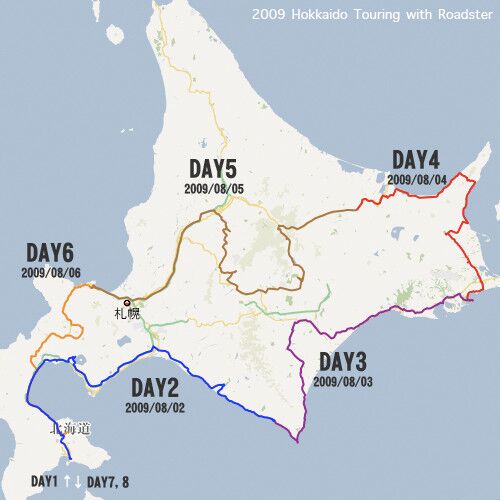改めて先週の北海道ツーリングを振り返ってみます。 ■ルート(全走行距離:3,784km)1日目:東京→東北自動車道→青森→フェリー→函館 754km 2日目:函館→洞爺湖→道央自動車道→新冠→様似 449km 3日目:様似→襟裳岬→黄金道路→帯広→釧路→霧多布 398km 4日目:霧多…