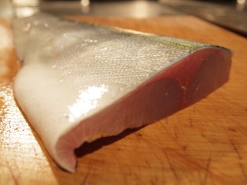 伯父がイナダを釣ってきたので、おこぼれにあずかりました。 久しぶりに台所に立って刺身におろします。皮を剥ぐのがヘタクソで。。。 かなり脂がのっていて甘い。新年早々旨いもの頂き満足満足。> 伯父さん、有り難う!